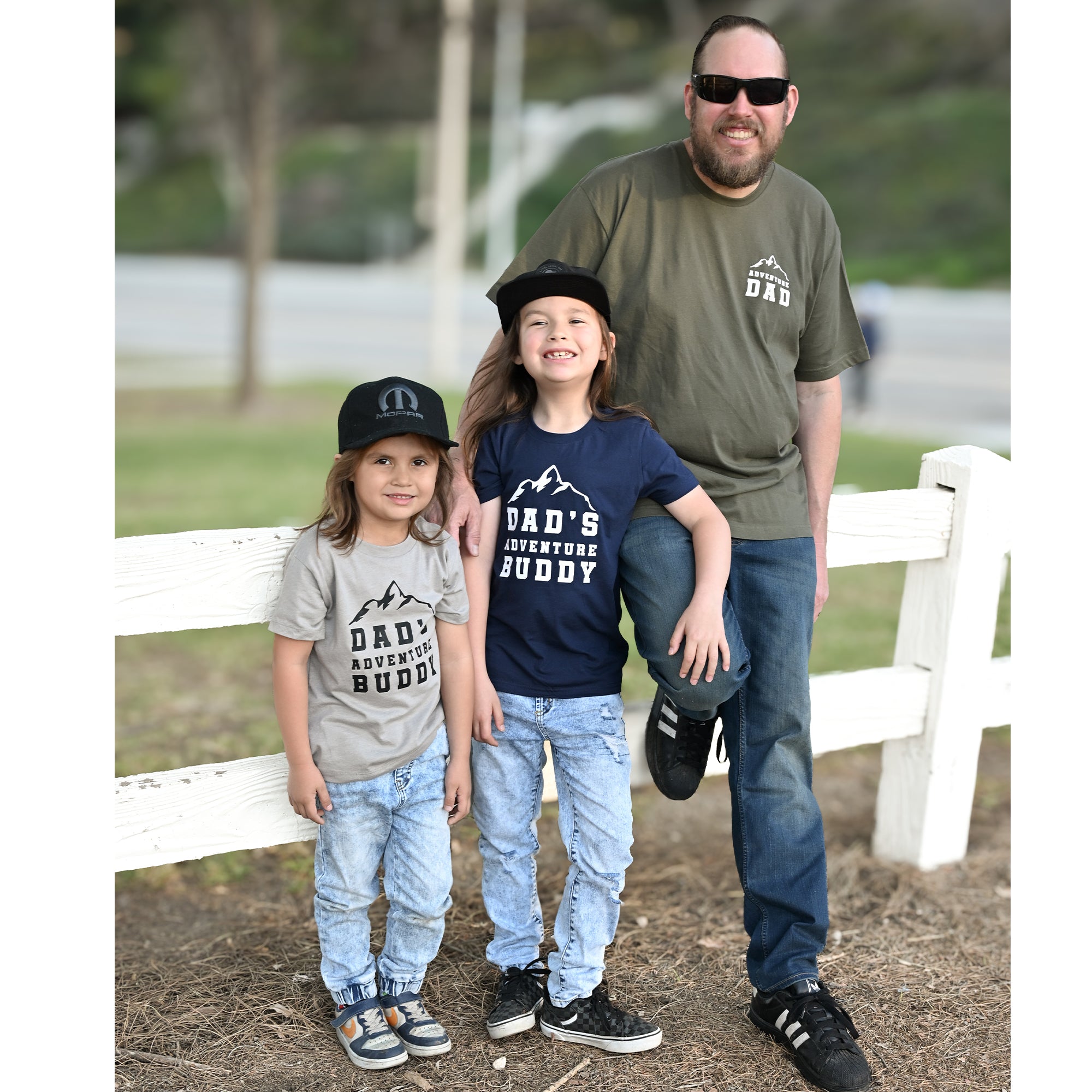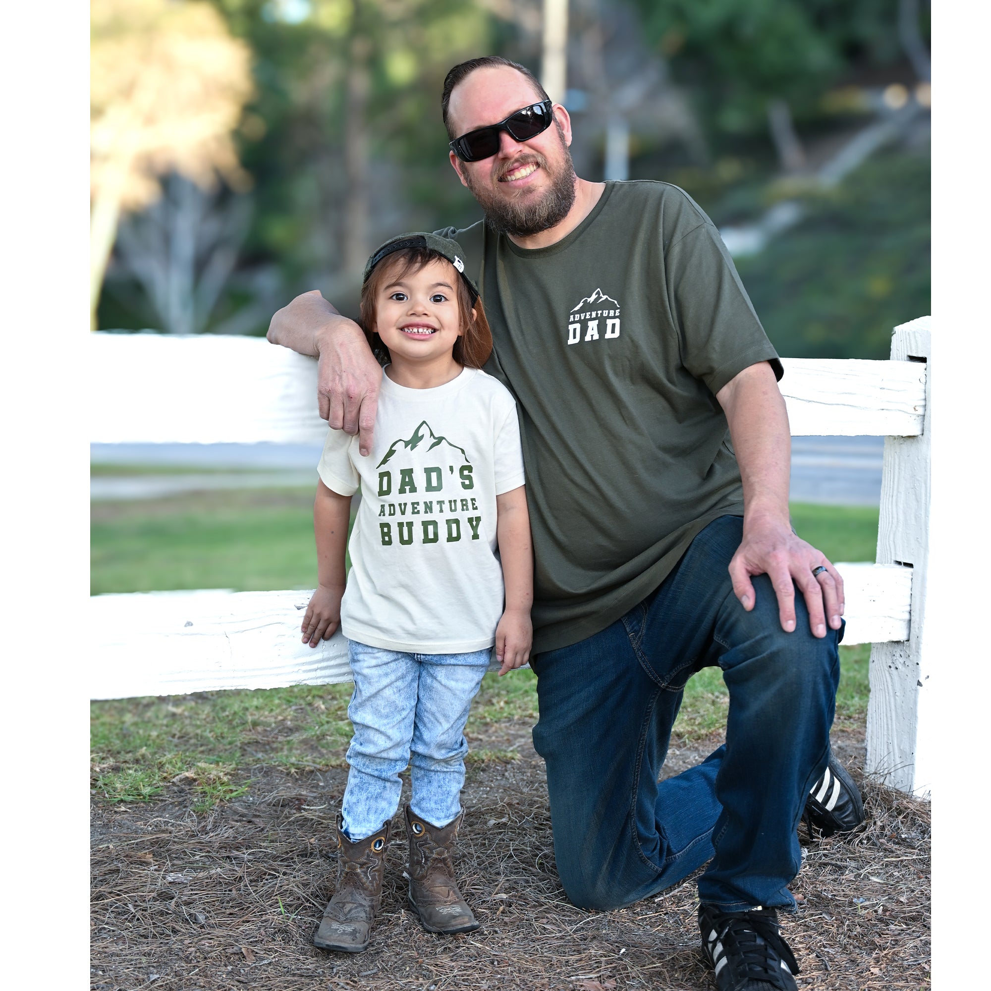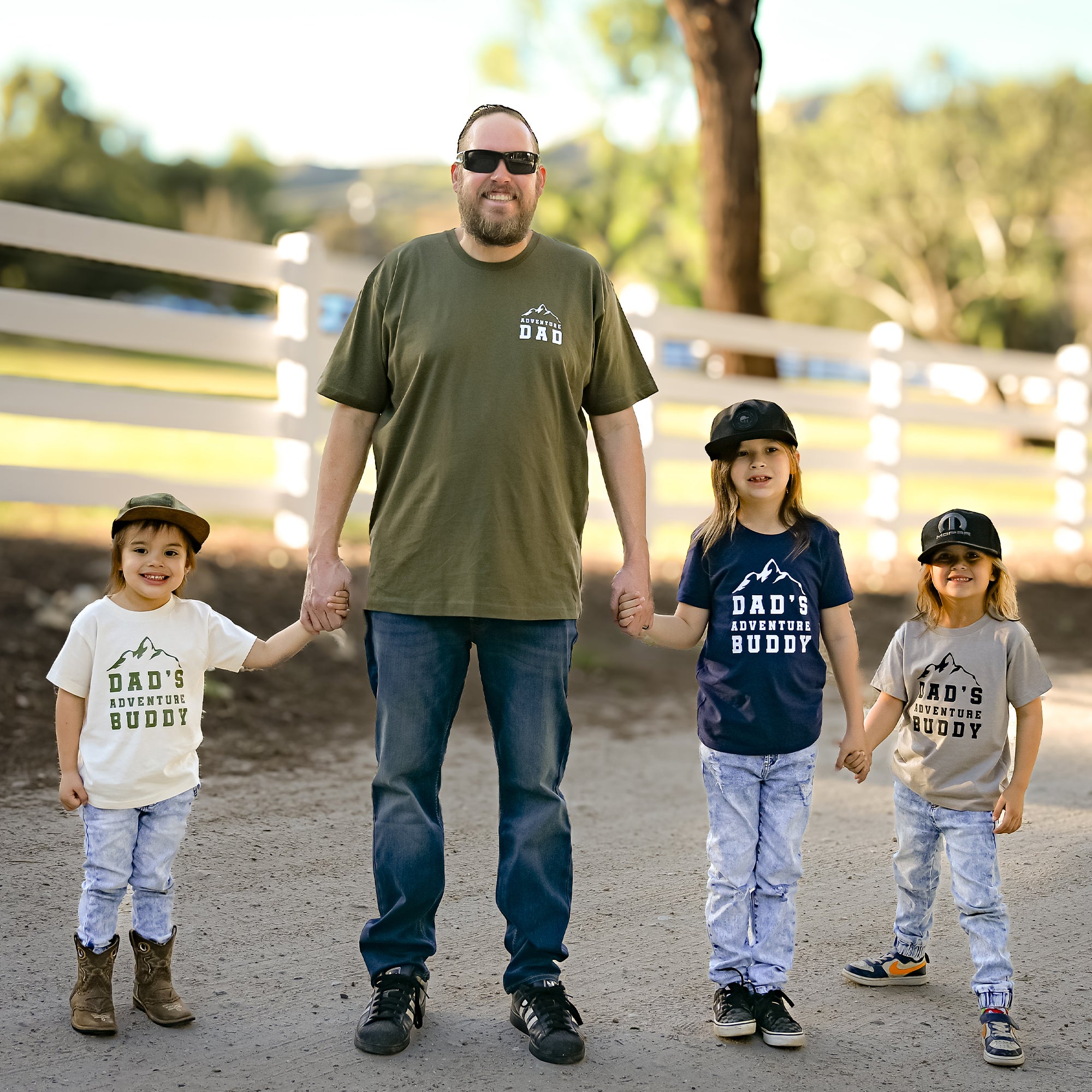 Create unforgettable memories with our Adventure Dad & Kids Matching Shirts Set, designed for fathers and their little adventure buddies. This matching outfit set includes a premium short-sleeve t-shirt for Dad with the front print “Adventure Dad” and a coordinated kids’ top or baby one-piece featuring “Dad’s Adventure Buddy.”