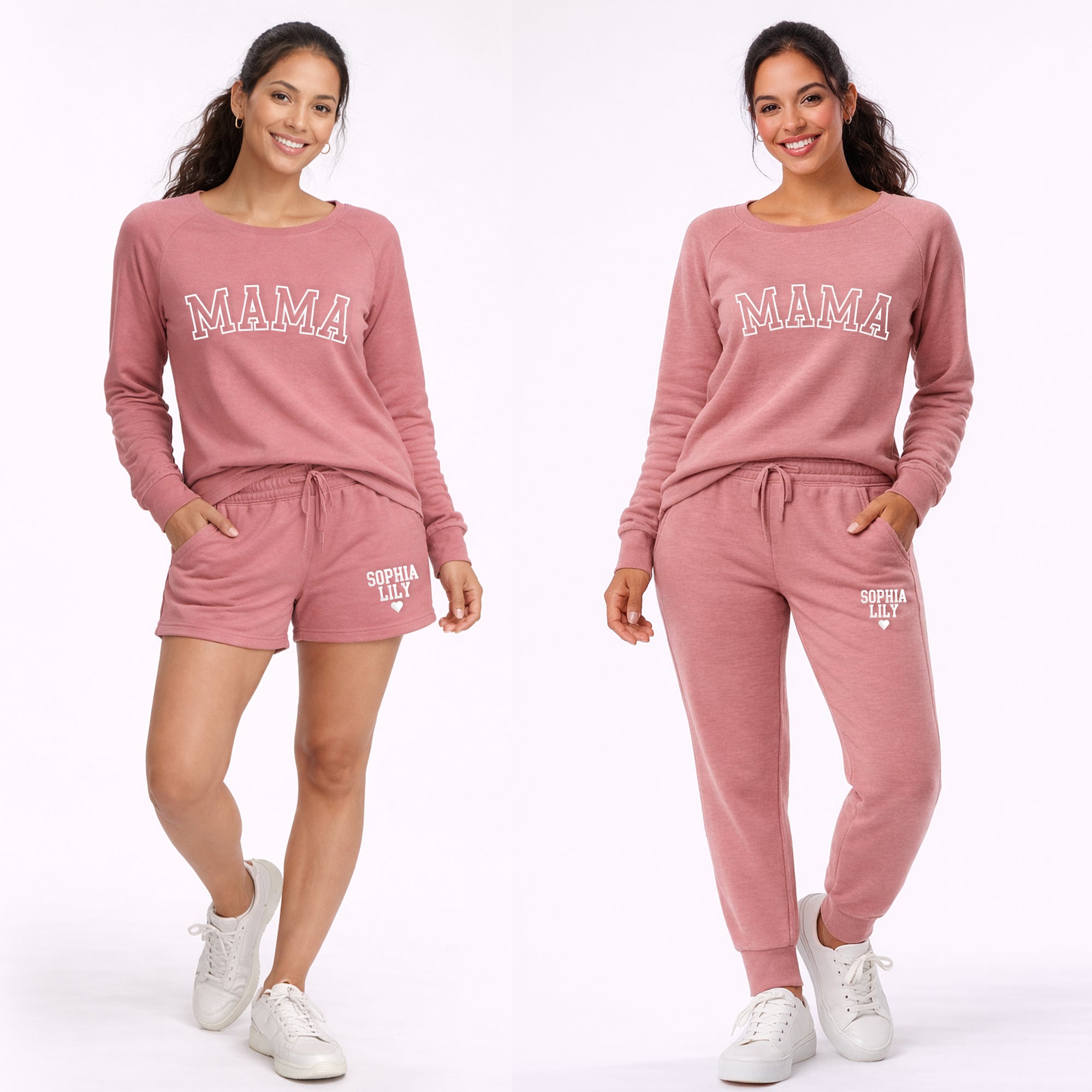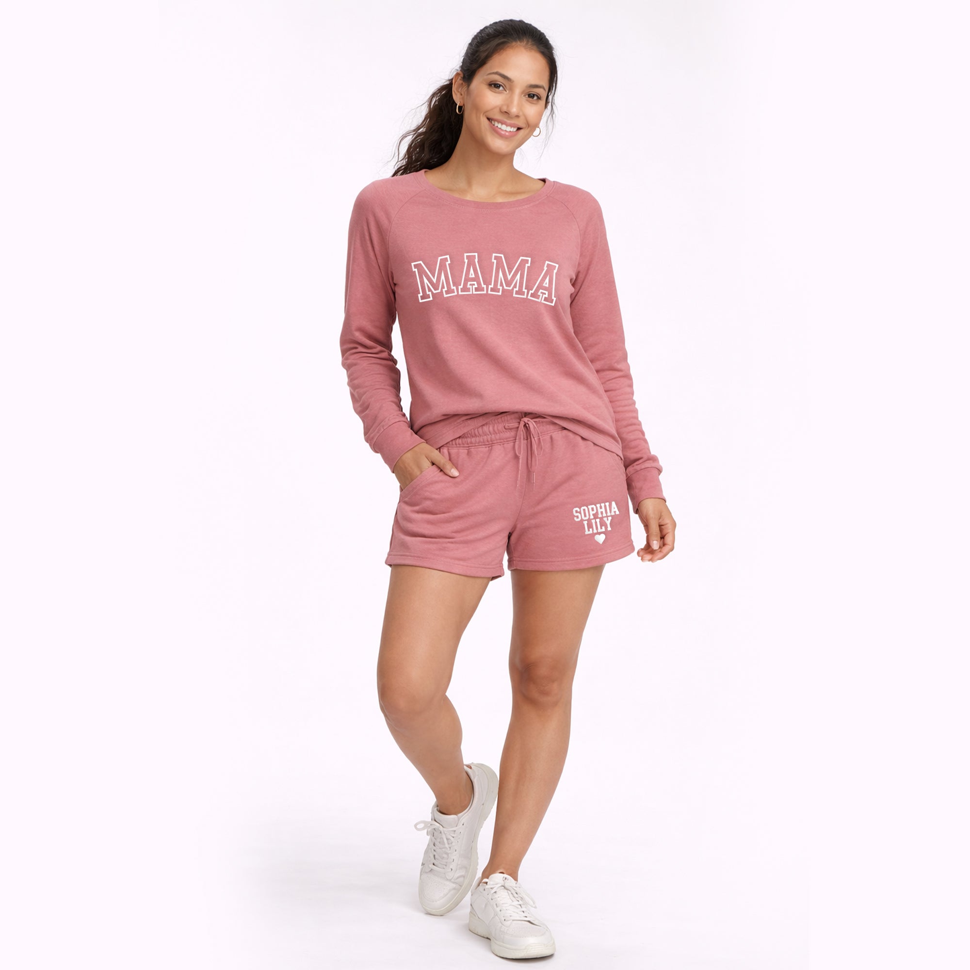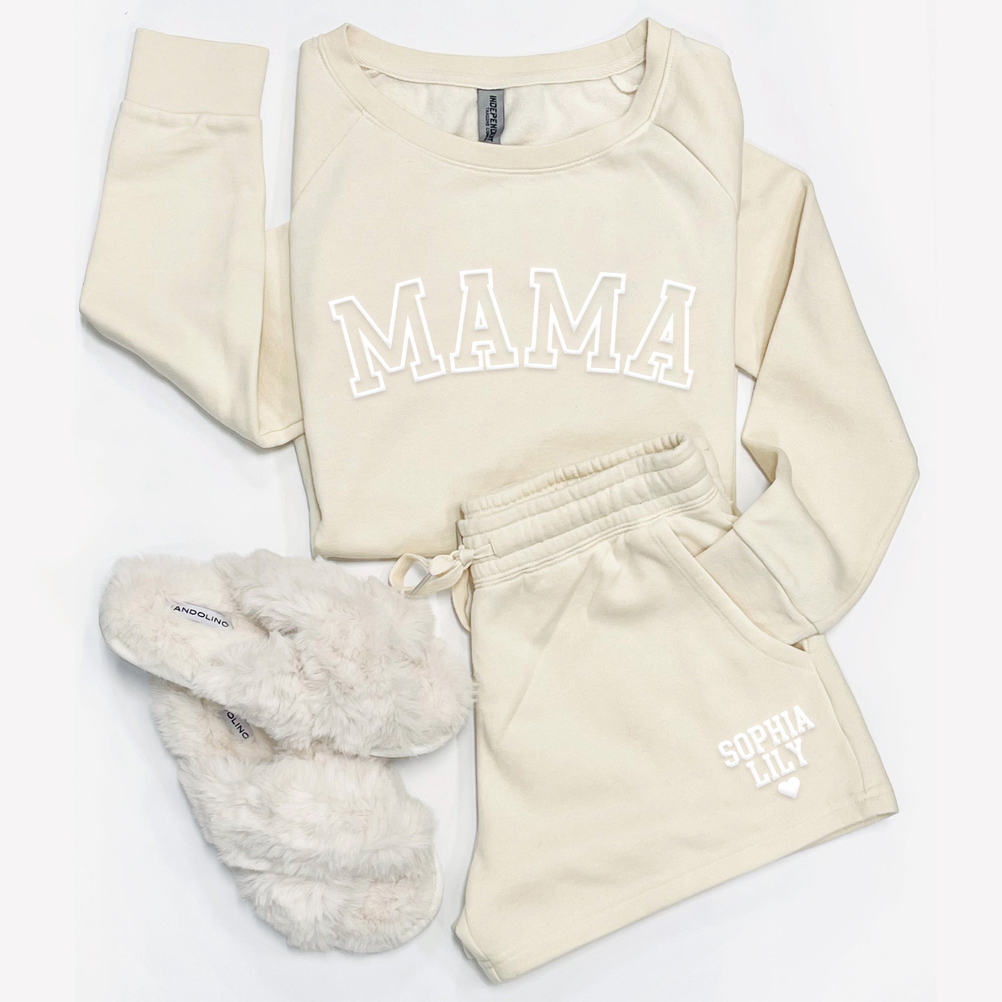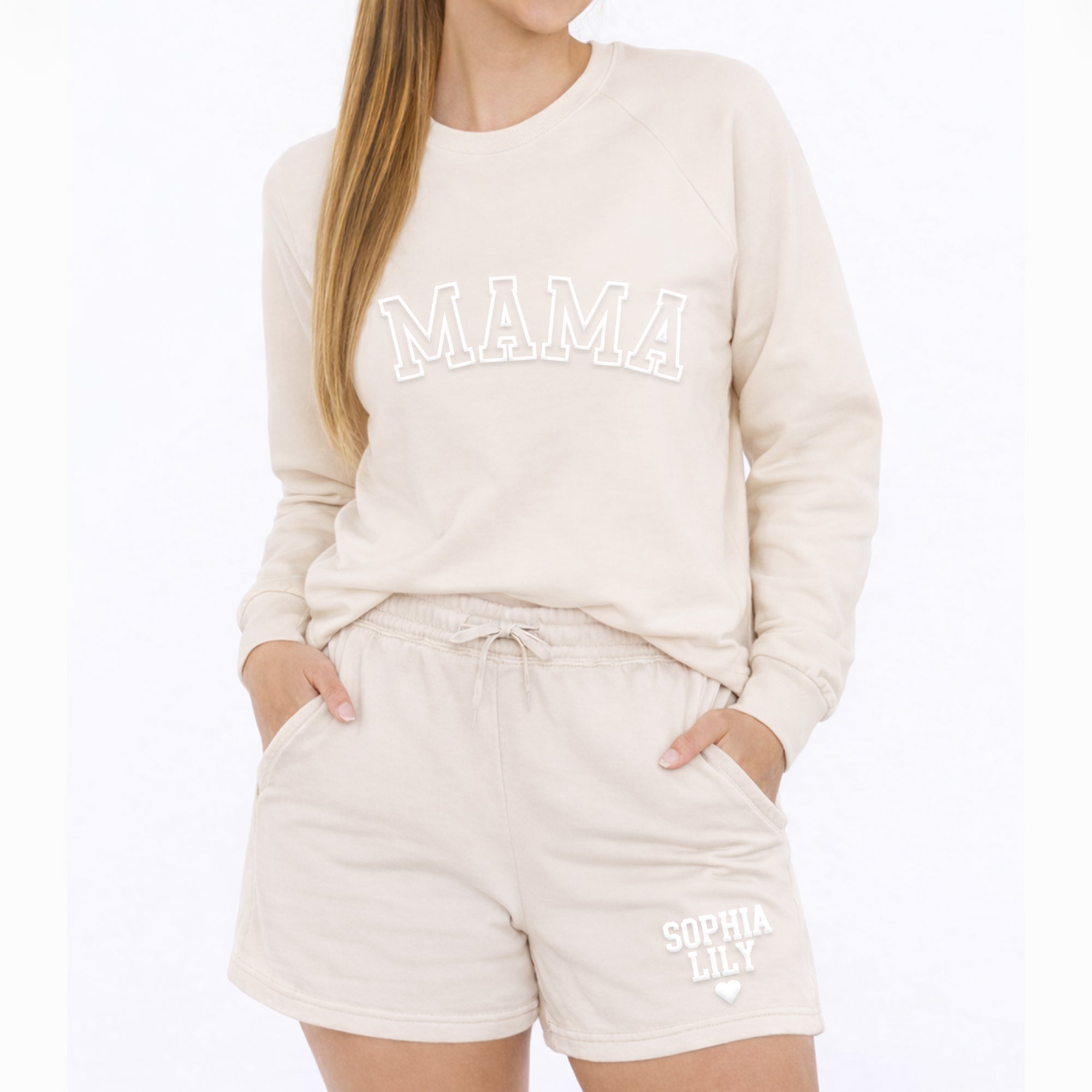 Personalized Mama Sweatshirt & Shorts Set – Custom Mom Lounge Outfit with Kids Names Puff Print