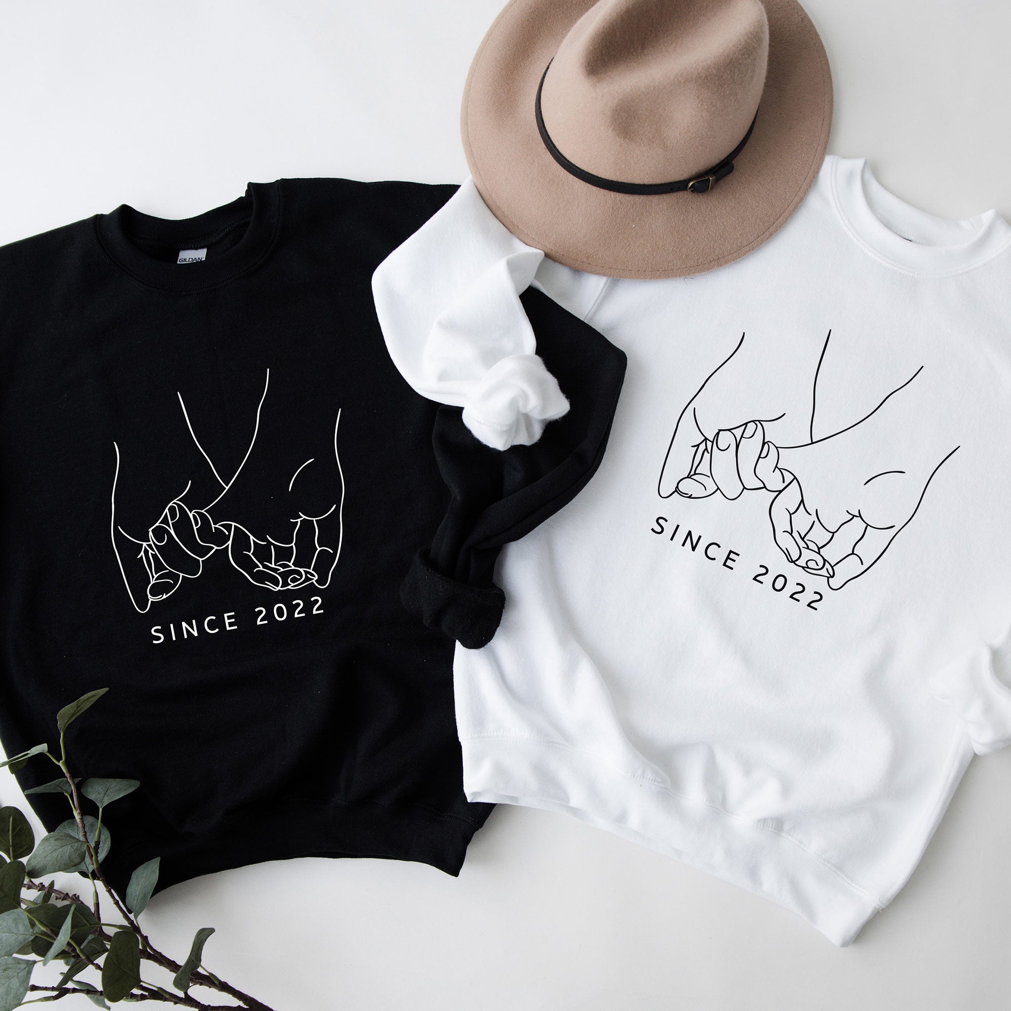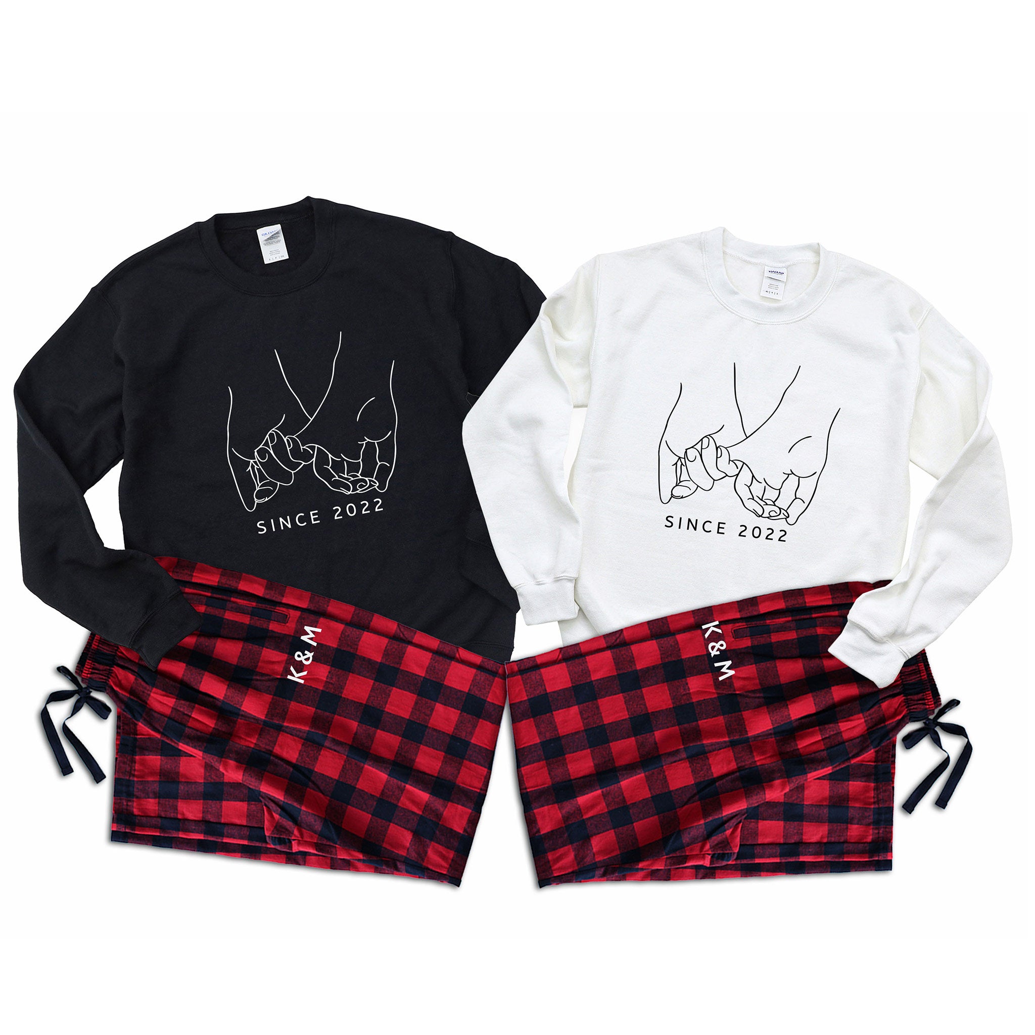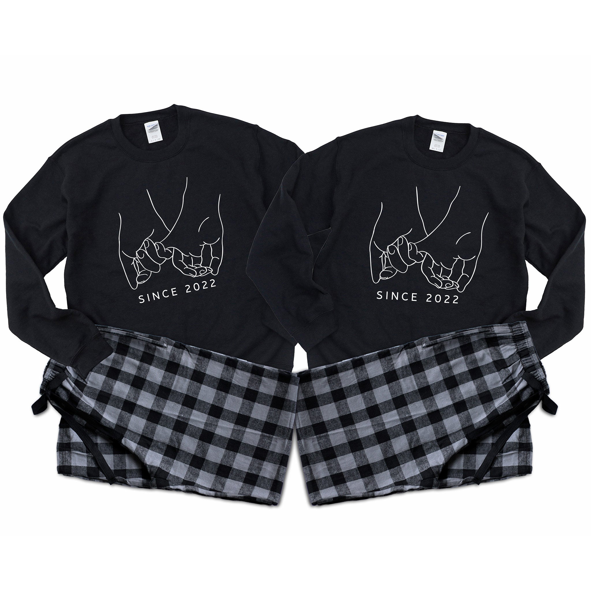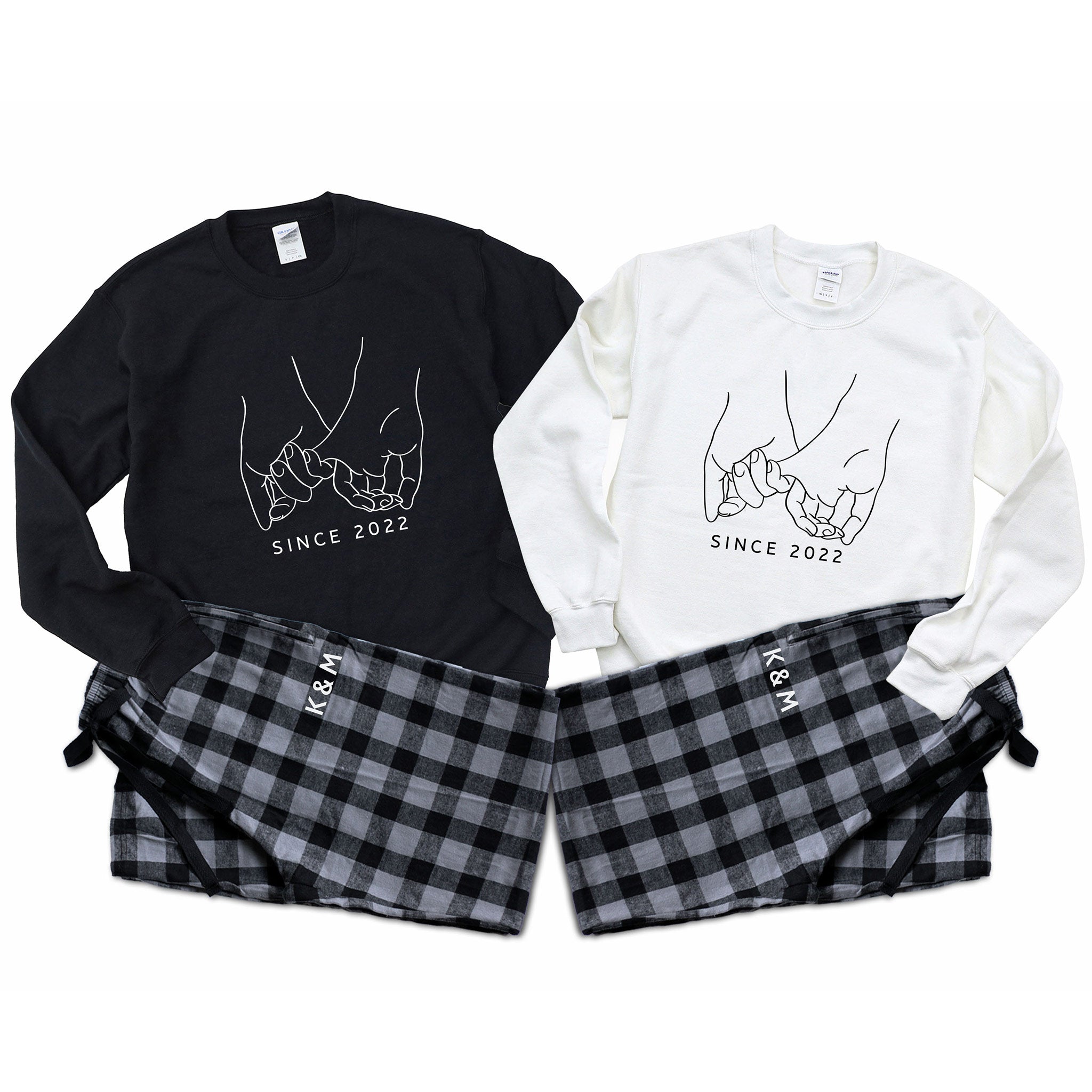 Pinky Promise Matching Couples Sweatshirt and Flannel Pajama Set – Personalized Year Custom Print | Romantic Matching Outfits for Anniversary, Valentine’s Day, Engagement, Newlyweds & Christmas | Price per Set