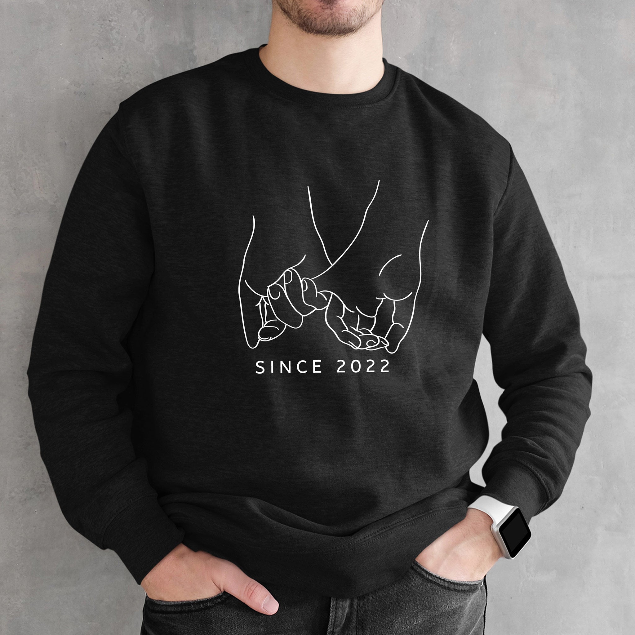Celebrate your love and connection with our Pinky Promise Matching Couples Sweatshirt and Flannel Pajama Set. This cozy and stylish set includes one sweatshirt and one pair of soft checkered flannel pants—perfect for couples who love to match in comfort and style. The sweatshirt features a romantic design of two hands holding pinkies, symbolizing trust and commitment, and can be personalized with your special year to make it truly unique.