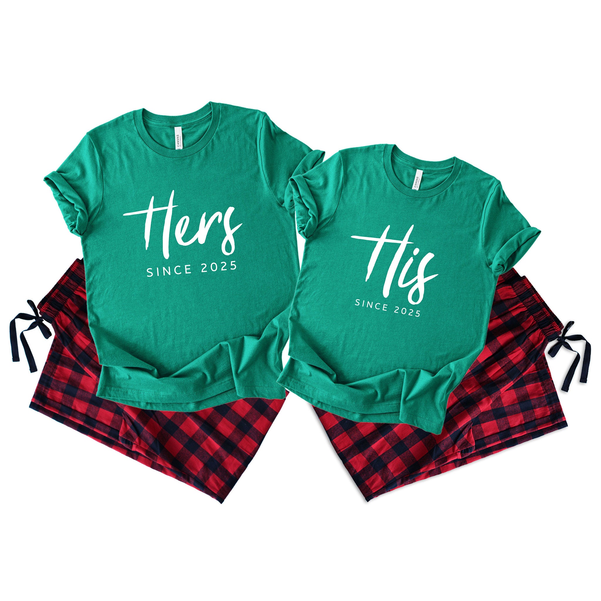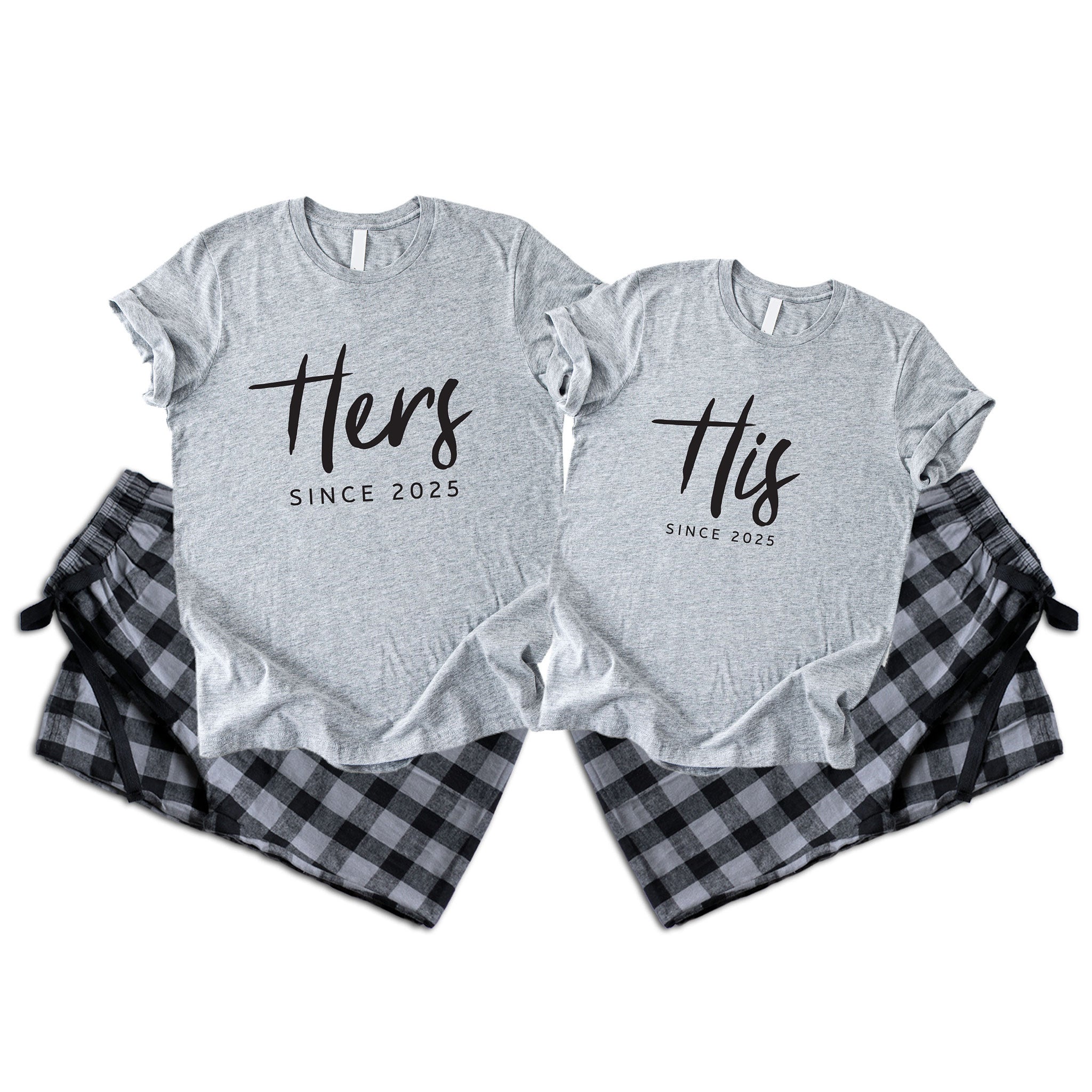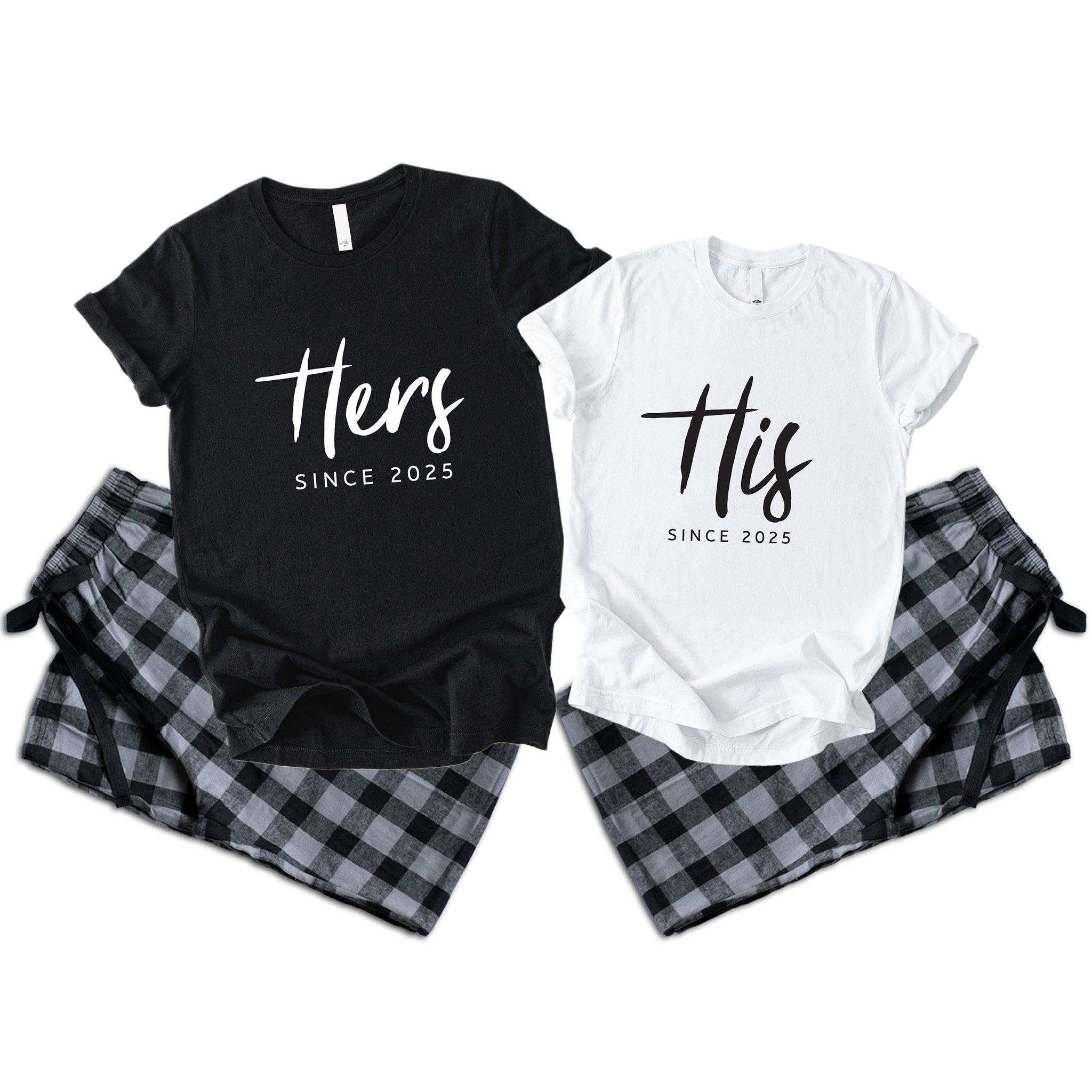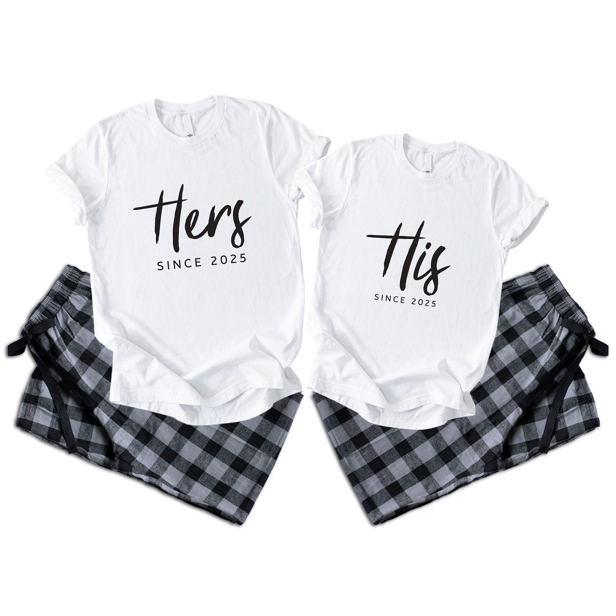 Snuggle up in style with our personalized His & Hers pajama set! Each set includes a soft T-shirt and cozy checkered flannel pants, customized with your special year. Perfect for anniversaries, Valentine’s Day, engagements, or Christmas, these matching pajamas make every night together extra special.