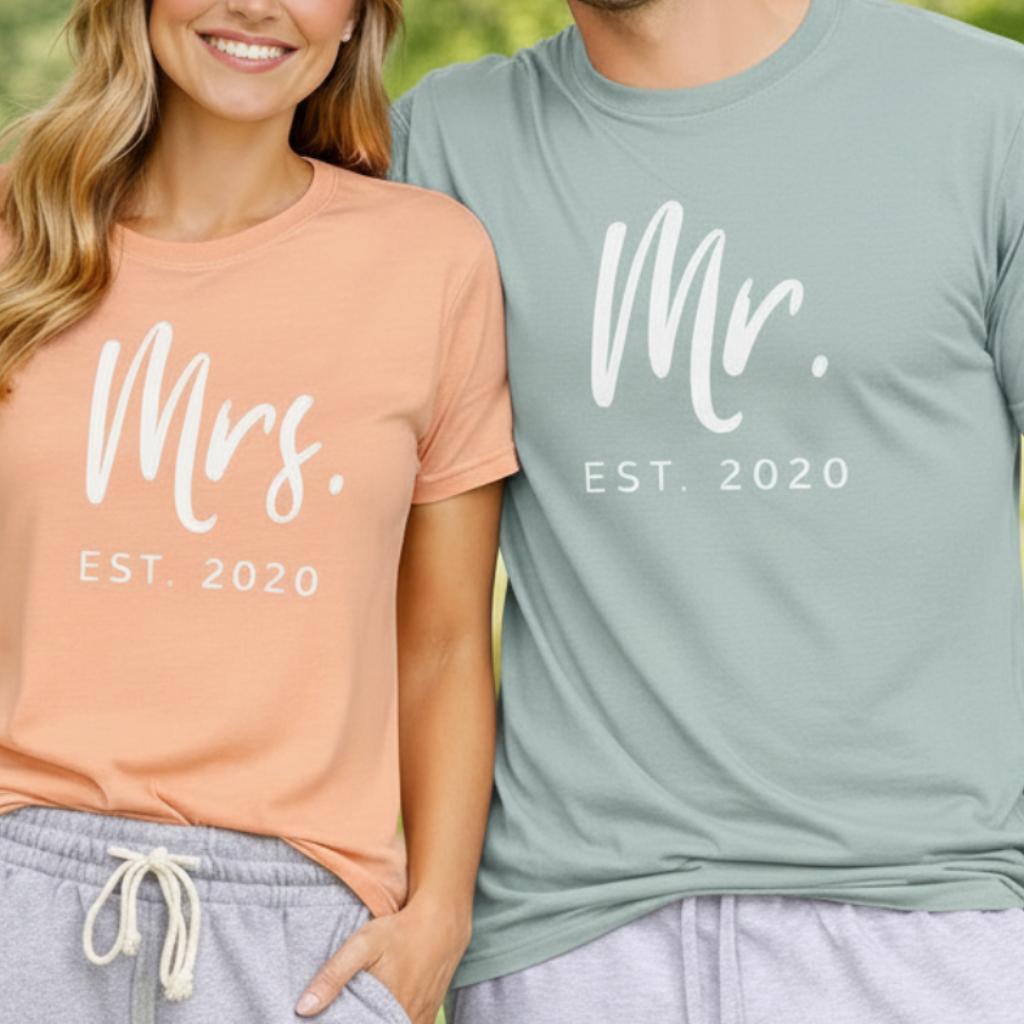 This personalized Mr. and Mrs. casual matching set is a thoughtful gift that blends comfort, style, and meaning. Whether you’re newlyweds or celebrating years together, this custom couple outfit is made to be worn and loved.